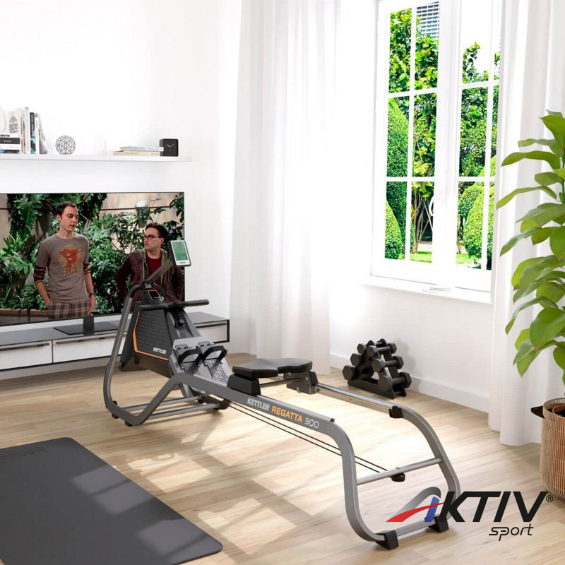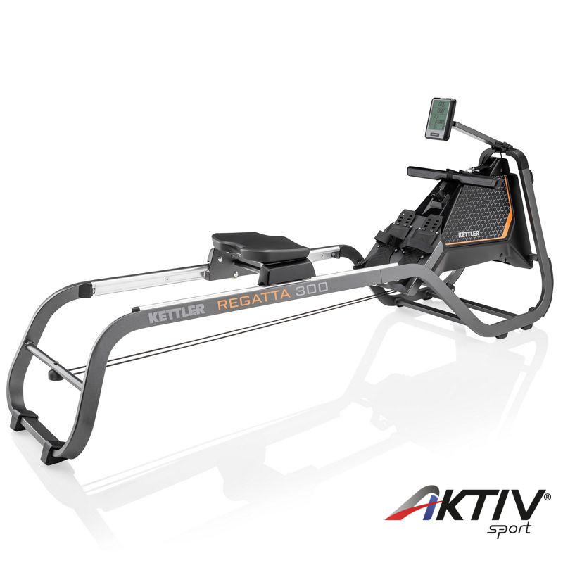 A KETTLER REGATTA 300 evezőpaddal az evezés valóban hatékony otthoni testmozgás lehet, amivel fejlesztheti izomzatát és karban tarthatja testét. Mágneses fékrendszerrel rendelkezik. A nehézségi szintek 5 fokozatban állíthatók manuálisan egy ellenállás szabályozó tekerővel.  Lendítő kereke 6 kg-os. Max. terhelhetősége 130 kg. Az evezőgép összecsukható és beállítható akár a sarokba a fal mellé, így könnyen elhelyezhető bármely helyiségben. Az extra hosszú síneknek köszönhetően magas felhasználók is kényelmesen edzhetnek az evezőpadon. Az evezőfogantyúk ergonómikus kialakításúak. Az LCD kijelzőn minden szükséges adatot figyelemmel kísérhet: 500 m idő, nehézségi szint, kalória, pulzus, löketfrekvencia, távolság, edzésidő. Bluetooth kompatibilis. Pulzusát mellöves pulzusmérő segítségével mérheti, mely nem tartozéka az evezőpadnak.