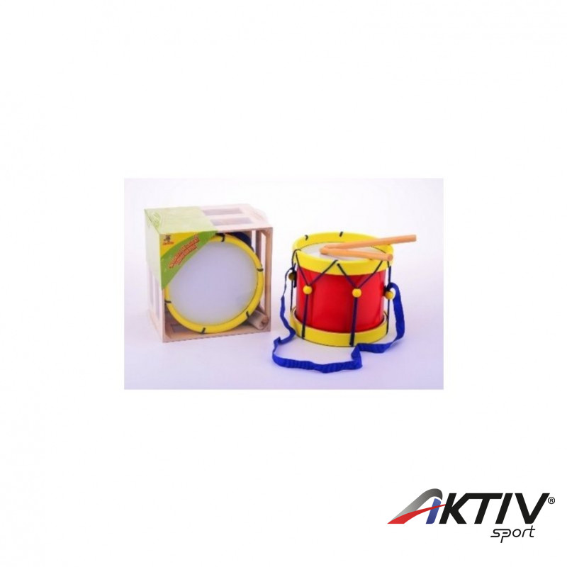 Nyakba akasztható nagyméretű dob 2 db ütõvel, praktikus fa tárolóban.