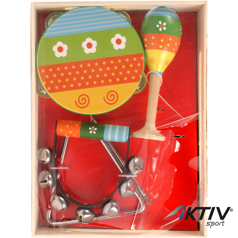 Fa hangszer készlet csörgődobbal