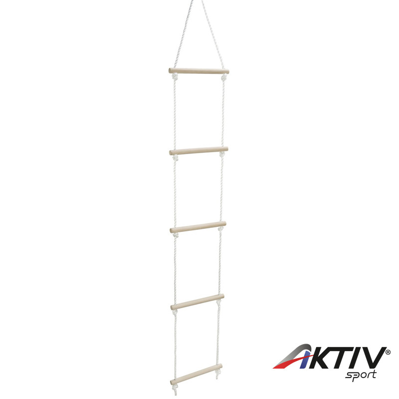 Fából és kötélből készült létra. A létra hossza 190 cm.