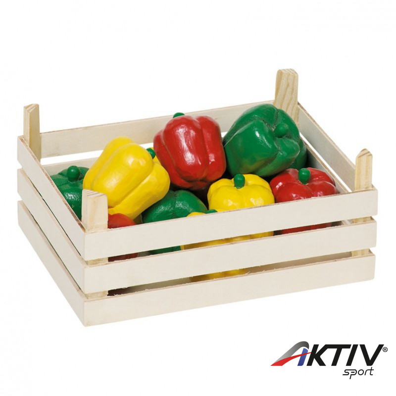 A készlet 12 db, festett fából készült, 4,5 cm-es nagyságú paprikát tartalmaz.