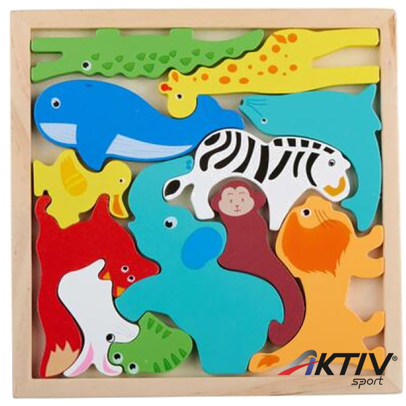 Magasított puzzlejáték, színes , különböző a figurákkal. A puzzle 12 elemből áll, mérete 16x16x1 cm. A festékanyag nem tartalmaz egészségre káros anyagokat.