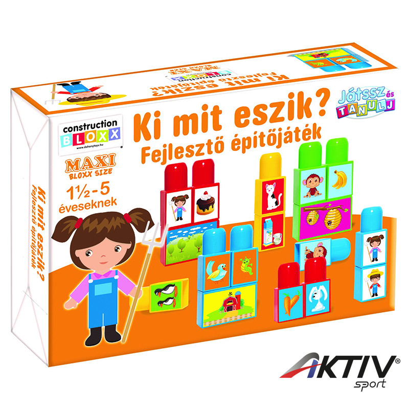 A Ki mit eszik? játék megismerteti az állatok táplálkozási szokásait és élőhelyeit. A kockákon állatok és kedvenc ételeik szerepelnek, valamint jellegzetes élőhelyük. A gyerekek feladata párosítani ezeket. A feladatok megoldása motivációt nyújt a kicsiknek a tanulásra. A játék során a gyerekek kézügyessége logisztikai, motorikus, és koncentrációs készségei is fejlődnek.