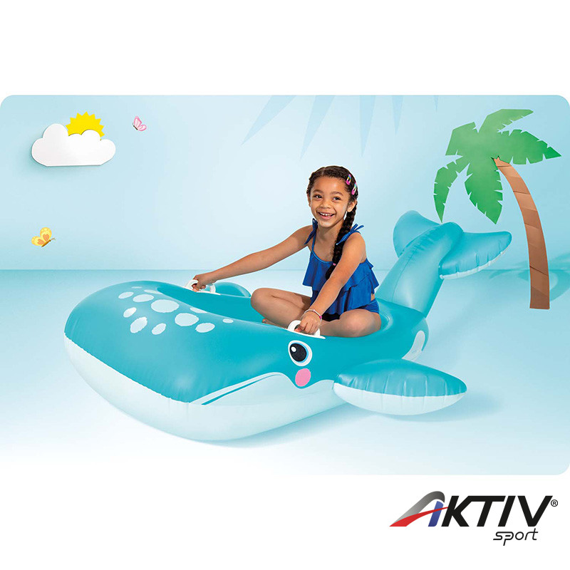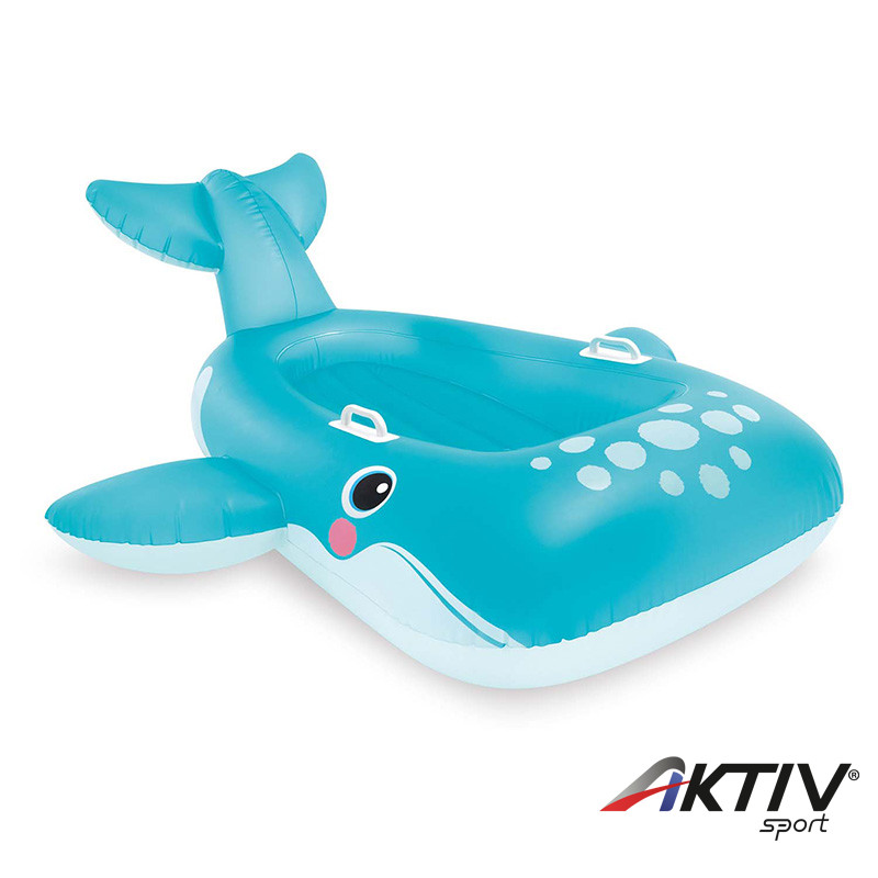 Felfújható bálna alakú gyerek úszógumi fogantyúkkal, 168 x 140 cm-es méretben.