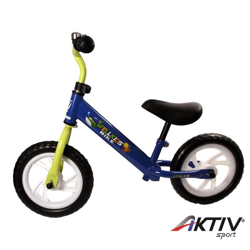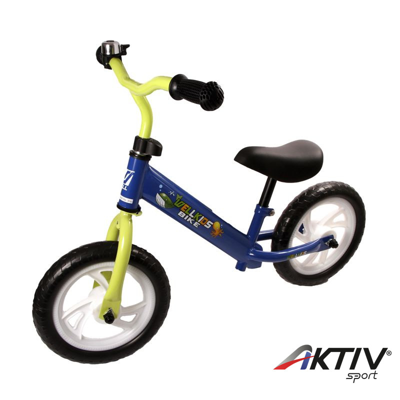 A kék-zöld színű fém futóbicikli egy masszív, merev vázas bicikli, pedálok nélkül. A legkisebbek megtanulhatják vele, hogyan kell irányítani a kétkerekűt, ha már biztonsággal tud haladni vele a kisfiú, következő lépésként már csak a pedálozást kell majd megtanulnia. A futóbicikli erős, mégis könnyű műanyag felnikkel és küllőkkel készült, a kormány és a puha szivaccsal töltött ülés magassága is állítható. A kormány markolata érdes, ezért nem csúszik meg rajta a gyerek keze, a strapabíró műanyagból készült kerekek nem kapnak defektet. A futóbicikli könnyű szerkezetű, ezért a szülőknek nem okoz nehézséget a cipelése