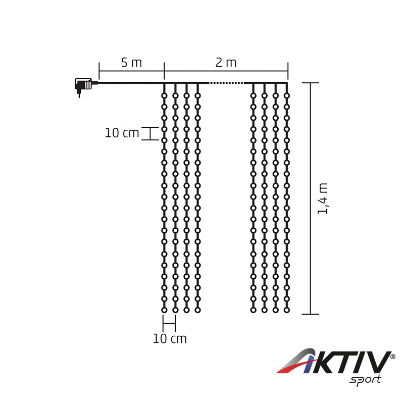 - Méret: 2 x 1,4 m; 5 m tápvezeték
