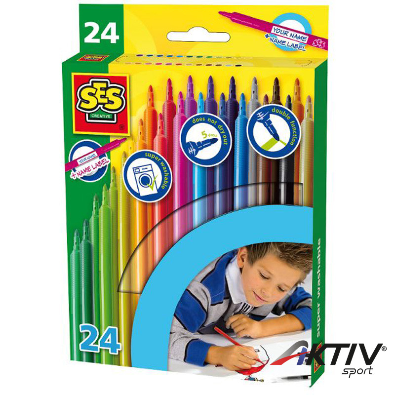 24 darabos filctoll készlet, a rajzolni szerető gyerekeknek. Textíliából, ruhából könnyedén kimosható. Kupak nélkül sem szárad ki 5 napig! Vékony és vastag vonalakat is lehet vele rajzolni. Élénk színek. A filctollak oldalára ráírhatjuk a nevet.