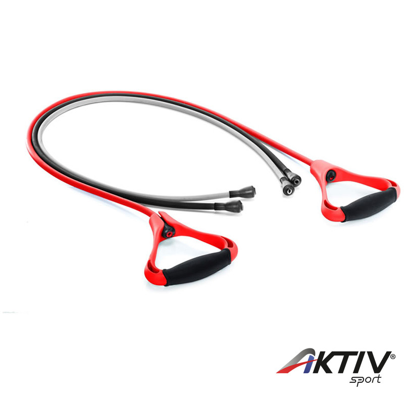 A szett tartalmaz 3 db ellenállás kötelet és 2 db leszerelhető fogantyút, mellyel tudjuk cserélgetni a köteleket.