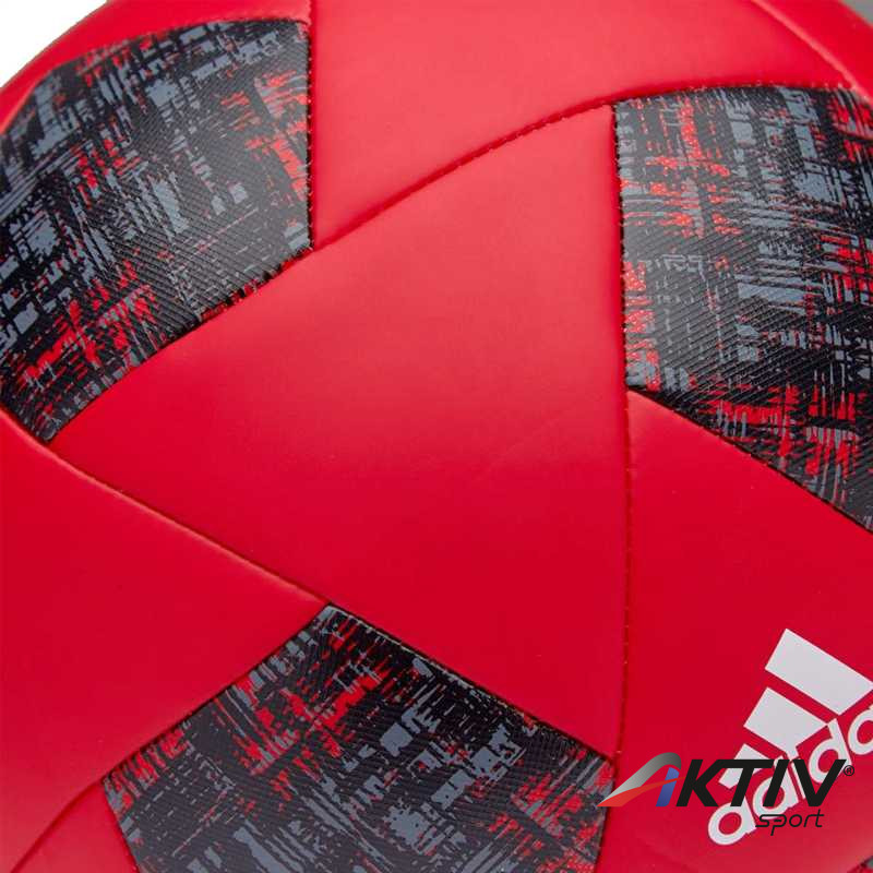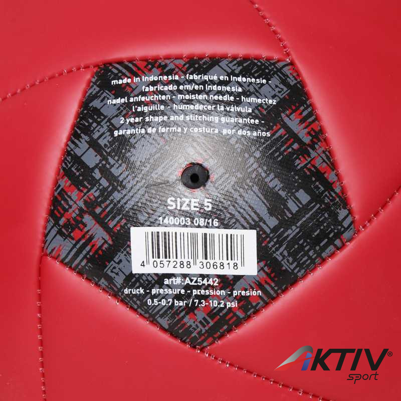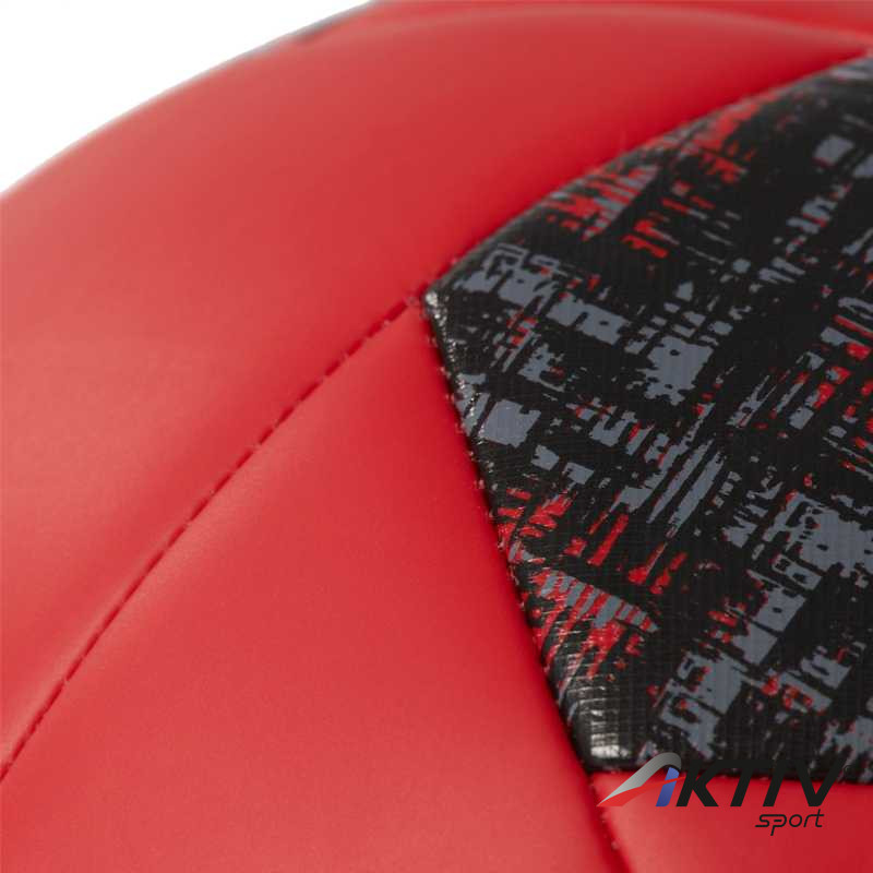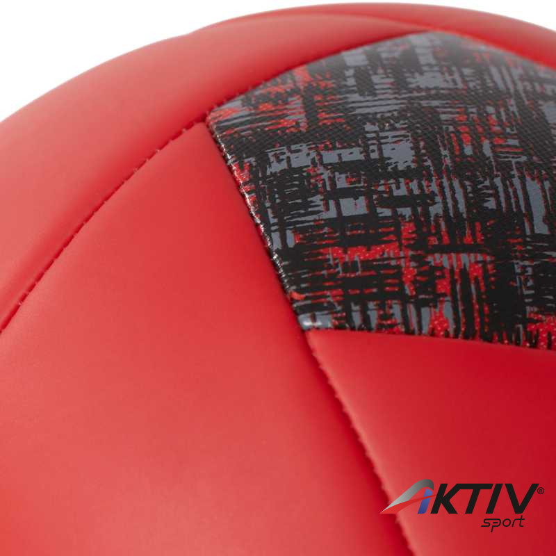 Sportos, piros-fekete díszítése igényes megjelenést kölcsönöz a futball-labdának.