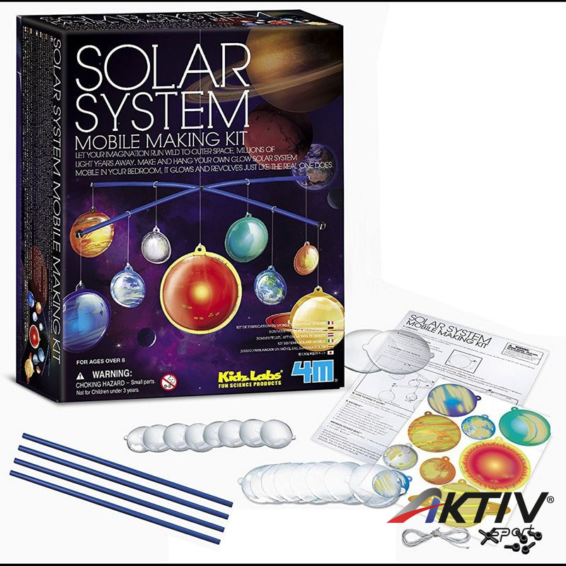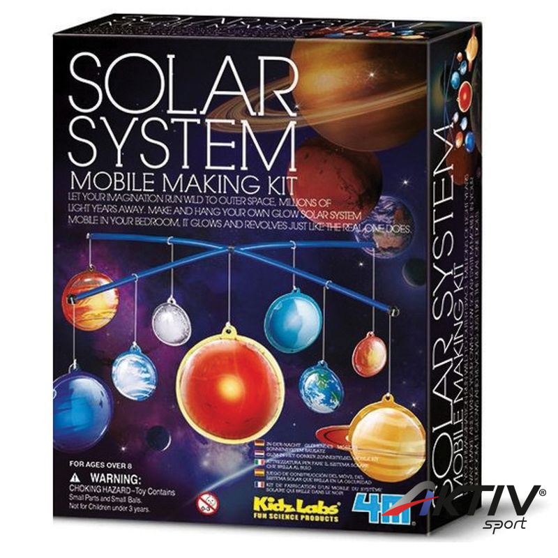 Készíts naprendszert modellező, sötétben világító, műanyag vázra felakasztható modellt. Készítsd el és lógasd fel saját naprendszeredet! A karton bolygókat ki kell pattintani a foglalatukból, majd tedd őket a műanyag védőlapok közé, köss rájuk damilt, végül állítsd össze a lógatható keretet! A hordozható naprendszer készlet világít a sötétben, így este is gyönyörködhetsz a Nap körül keringő bolygók, a Merkúr, a Vénusz, a Föld, a Mars, a Jupiter, a Szaturnusz, az Uránusz és a Neptunusz látványában!