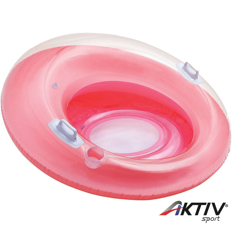 Háttámlás felfújható fotelmatrac pohártartóval kiegészítve. Az alsó ülő felület része hálós, melyen keresztül a víz beszivárogva hűsít. Két oldalán kapaszkodó markolattal van ellátva. A nyár felhőtlen élvezetéhez elengedhetetlen! Alkalmas napozásra vagy egy kis lazításra a vízben. A termék pink színben kapható! Átmérője: 119 cm. A termékhez tartozékként öntapadós javítófolt jár.
