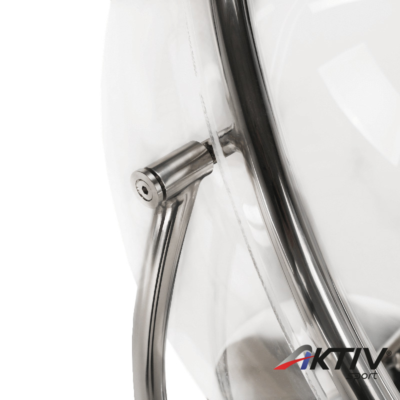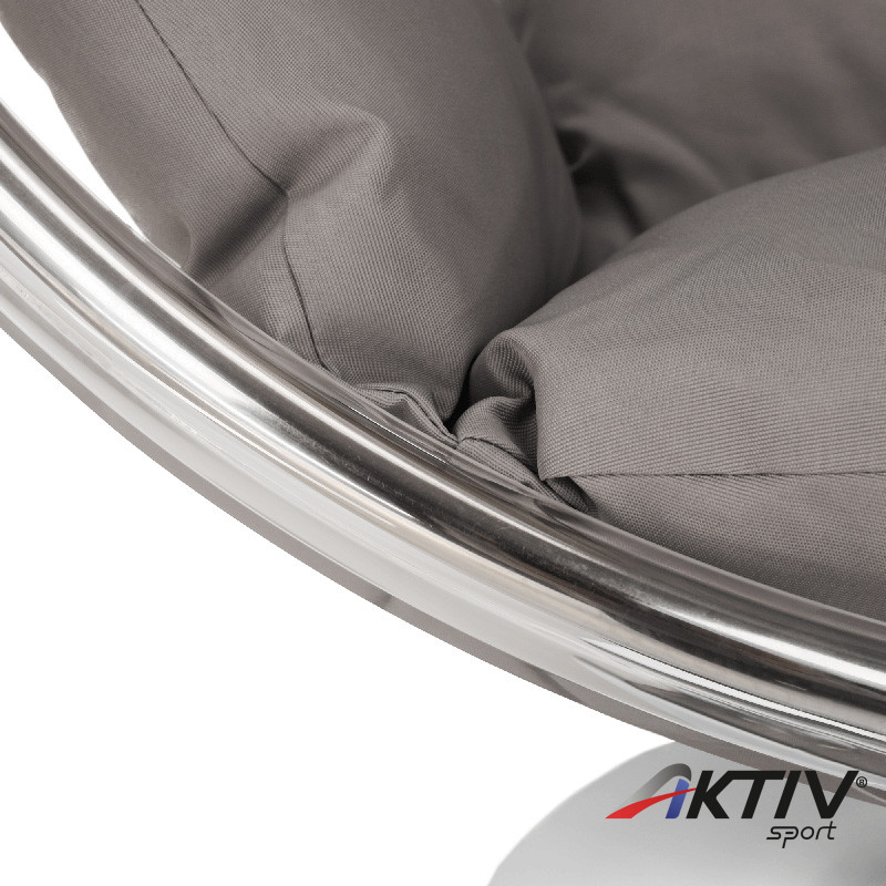 A függő fotel átlátszó kivitelben, ezüst kerettel készült.