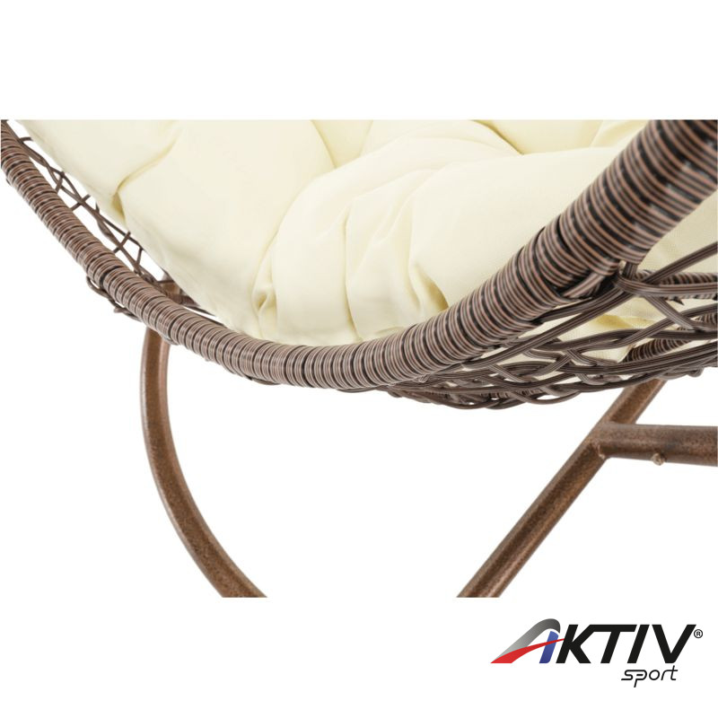 Maga a fotel barna műrattanból készült. A műrattan modern, kültéri bútorok gyakran használt anyaga. Karbantartást nem igénylő, könnyű, tartós és időtálló.