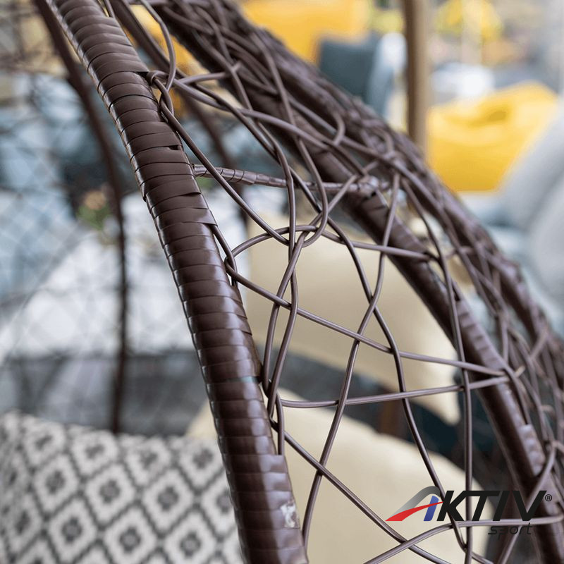 Műanyag rattanból készült minőségi barna fém vázzal. A műanyag rattan nagyon modern, kültéri bútorok gyakran használt anyaga. Karbantartást nem igénylő, könnyű, tartós és időtálló.