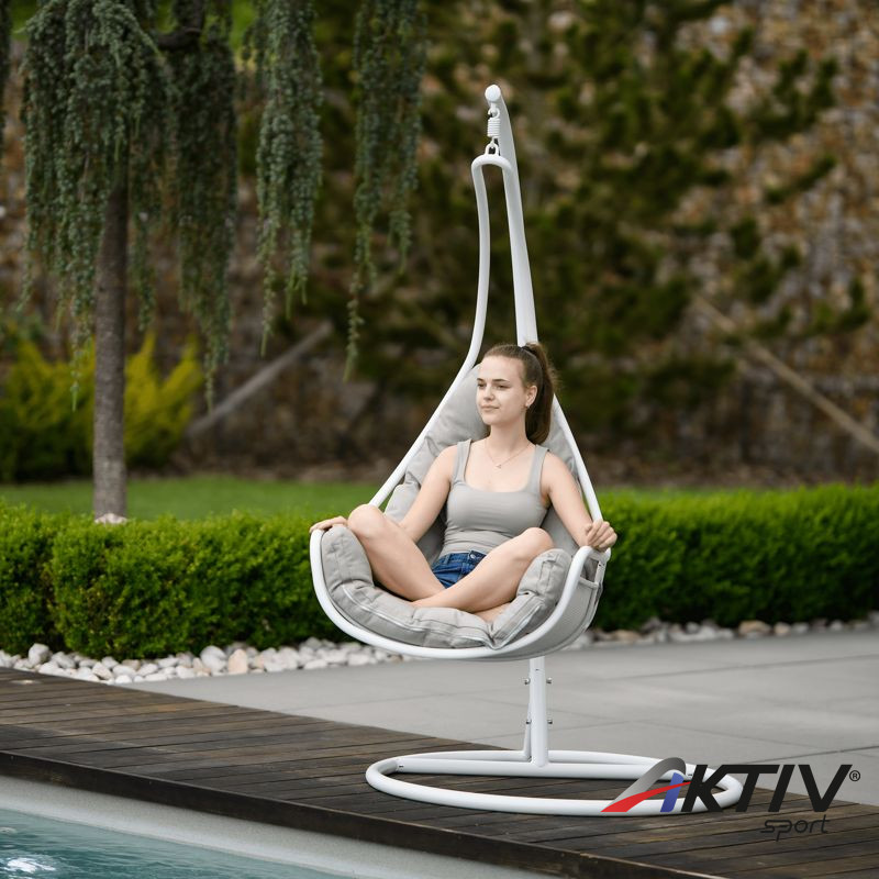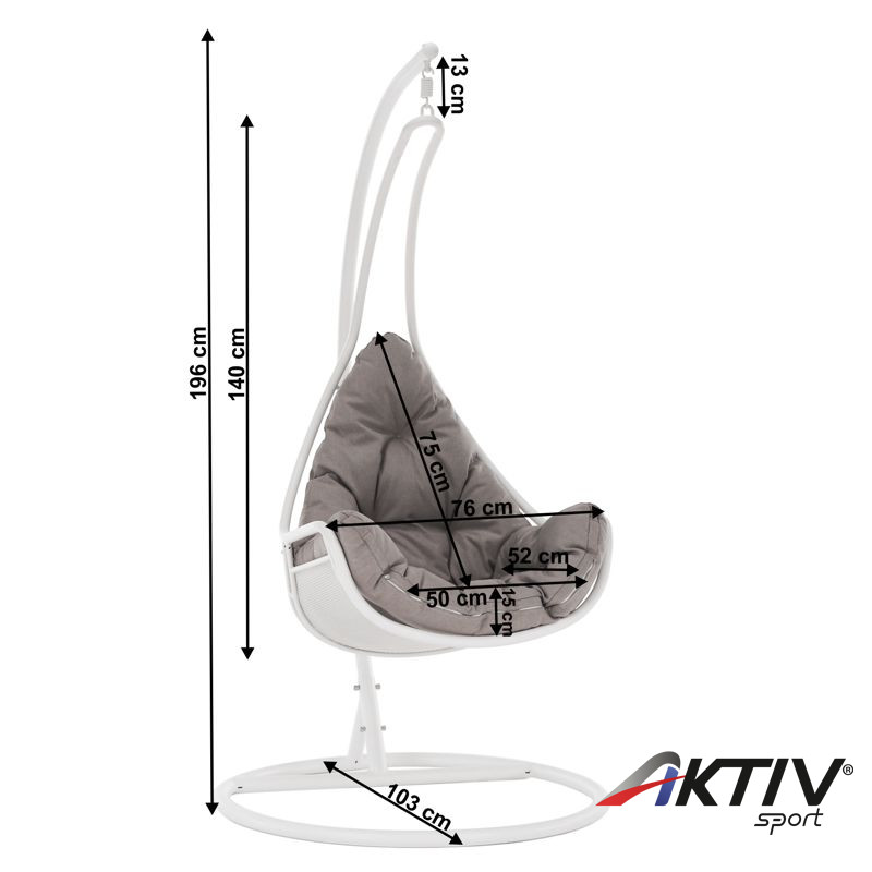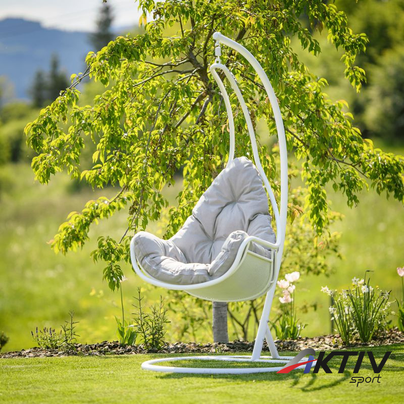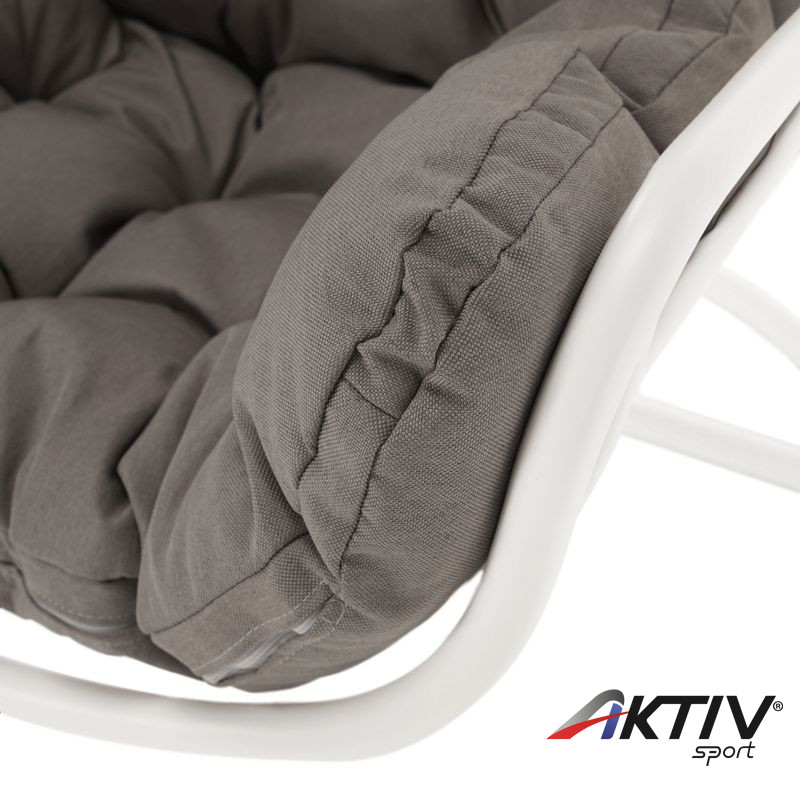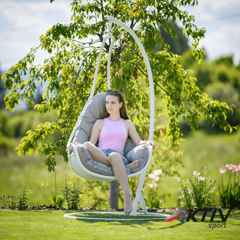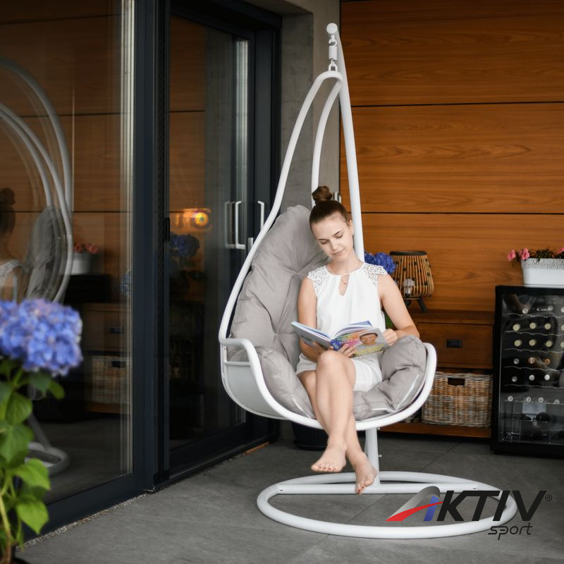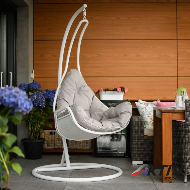 A világon semmi sem helyettesítheti a családdal és a barátokkal töltött időt. Ünnepség vagy grillparty? A modern TALISE függő fotel kellemesebbé teszi minden tevékenységünket és hozzájárul a megfelelő légkör megteremtéséhez. Elegánsan kiegészíti nemcsak a kényelmes relaxációs zónánkat, hanem az általános környezet is, amelyben élünk. Bent vagy kint? Csak Önön múlik, hol állítja fel a TALISE hintát, amely szilárd acélszerkezettel van szállítva. Az ülés kényelmét a kényelmes párna biztosítja. Színkialakítása igazán divatos. Garantáltan tetszeni fog azoknak, akik szeretik a részletesen harmonizált kiegészítőket. A szerkezet fehér színű, amelyet a szürkésbarna párna tökéletesen kiegészít. Esztétikus hangulatot kölcsönöz a fotelnek, és szinte hívogat egy kis pihenésre. A 150 kg teherbírású fotelt szinte mindenki számára tervezték.