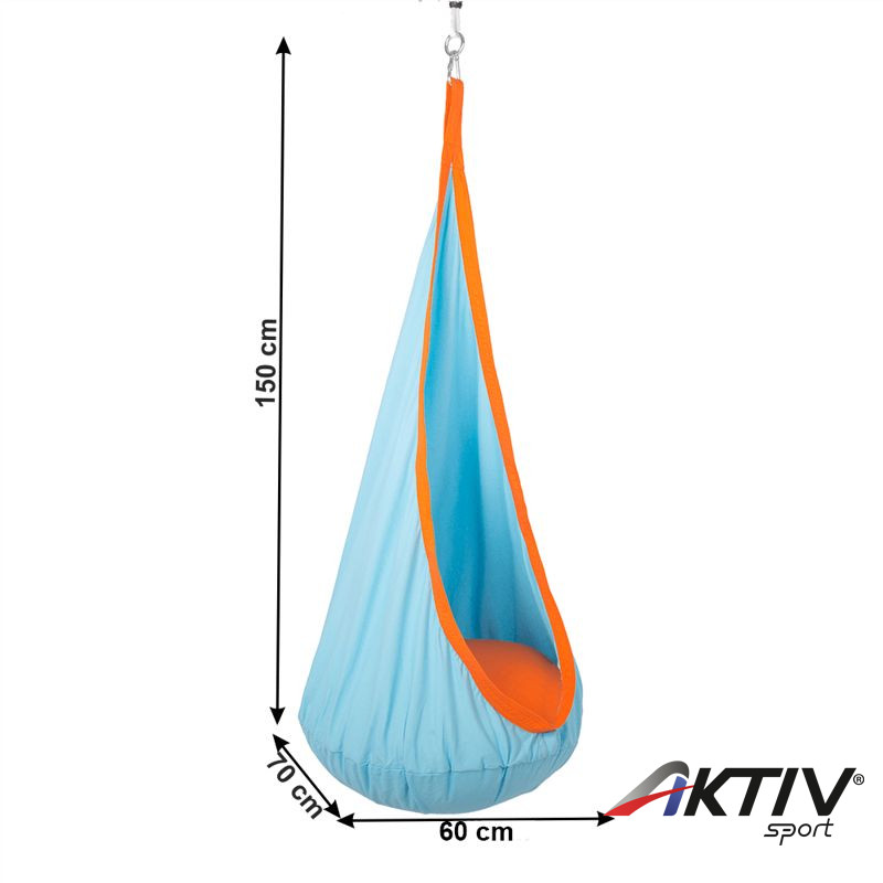 A függő hintaszék 100% pamutból készült, kék-narancs színben kapható.