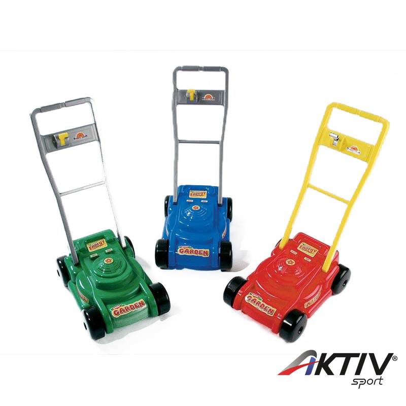 Műanyag játék fűnyíró a szorgos kis kertészeknek.