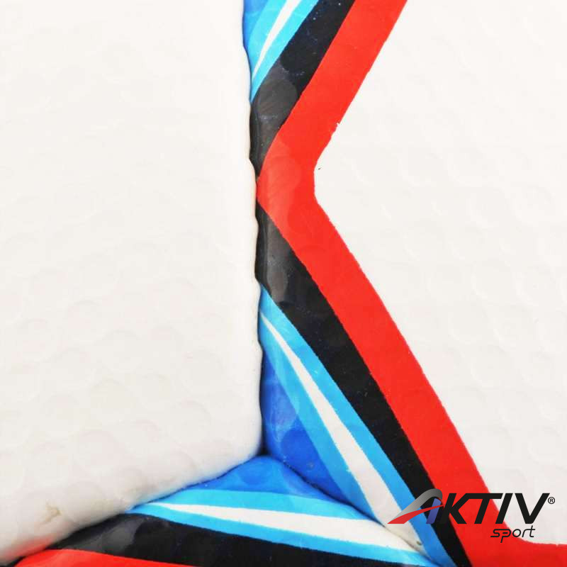 A kék-fehér-piros színkombináció igényes megjelenést kölcsönöz a labdának, valamint biztosítja a jobb láthatóságot és játék közben a gyorsabb reakciót.