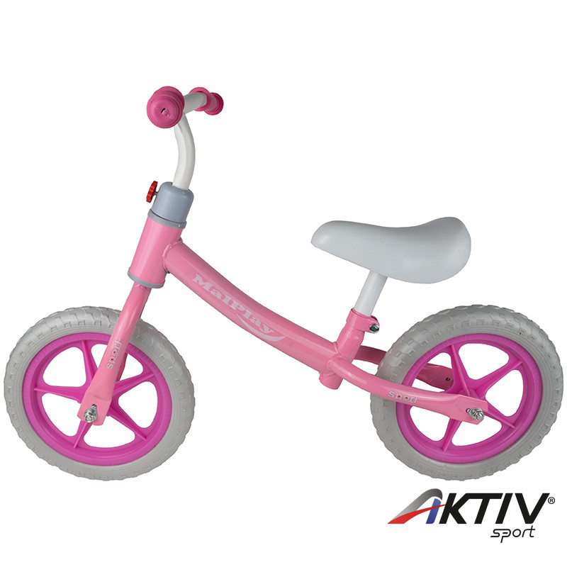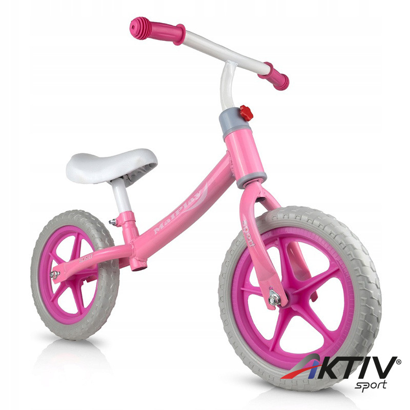 Rózsaszín-fehér tanulóbicikli. Kiválóan alkalmas a kisgyermekek részére, hogy a biciklizés előtt megtanuljanak egyensúlyozni.