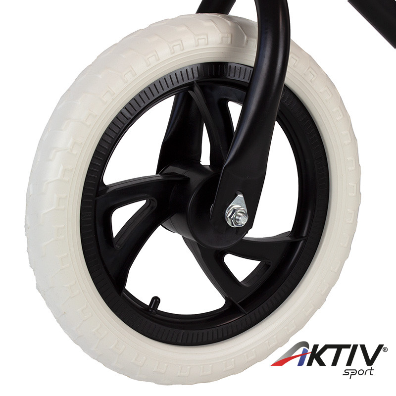 A futóbicikli masszív fém vázas, könnyű szerkezetű, a kormány markolata pedig csúszásmentes a biztonságos használat érdekében. Könnyű műanyag felnikkel és küllőkkel rendelkezik, a kormány és az ergonomikus ülés magassága állítható.