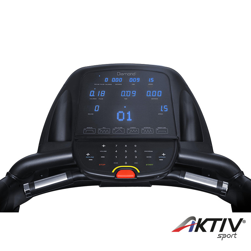 - Kijelző által kijelzett értékek: idő, sebesség, távolság, dőlésszög, kalória, pulzus, körök száma