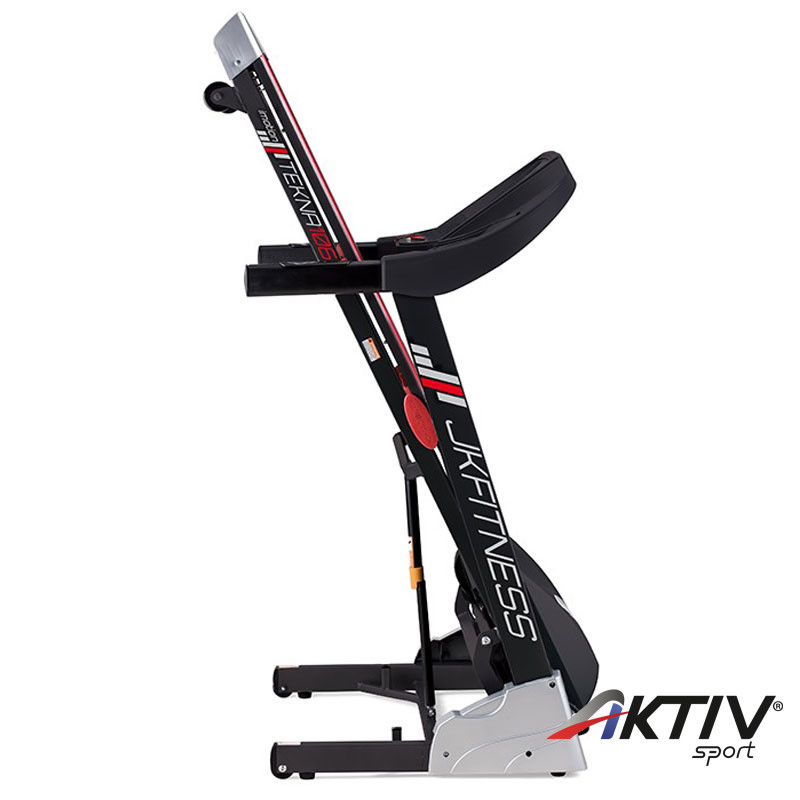 A JK Fitness Tekna 106 fekete színű futópadja csendes, 2 lóerős HP motorral van felszerelve, mely az erősebb otthoni edzésekre is kiválóan alkalmas.