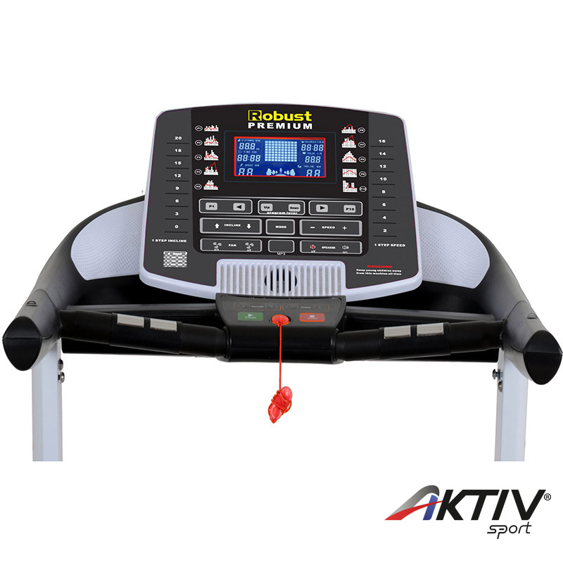 A Robust Premium Omega futópad nagy kopásállóságú műanyagok és görgők, illetve erősített műanyag és acélelemek ergonomikus formatervezésének az eredménye, hogy ne csak egy igazán stílusos, hanem valóban masszív és tartós futópad lásson napvilágot. Csendes és megbízható 3 lóerős motorjának, erős dőlésszög szabályozó rendszerének, hatalmas, 22 km/h végsebességének és felhasználóbarát, több programlehetőséget kínáló komputerének köszönhetően bármilyen környezetben megbízható működést biztosít. A Robust Premium Omega futópad nagy, 140x50 cm-es, ízületkímélő rendszerrel ellátott futófelülete komfortossá, mellkasi jeladó öves pulzusmérési lehetősége biztonságossá, a nagy LCD kijelzője pedig folyamatosan nyomon követhetővé teszi az edzésmunkát.