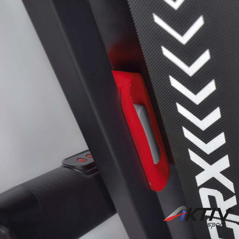 A Toorx EXPERIENCE PLUS futógép futófelülete felhajtható és ebben az állapotában egyszerűen mozgatható.