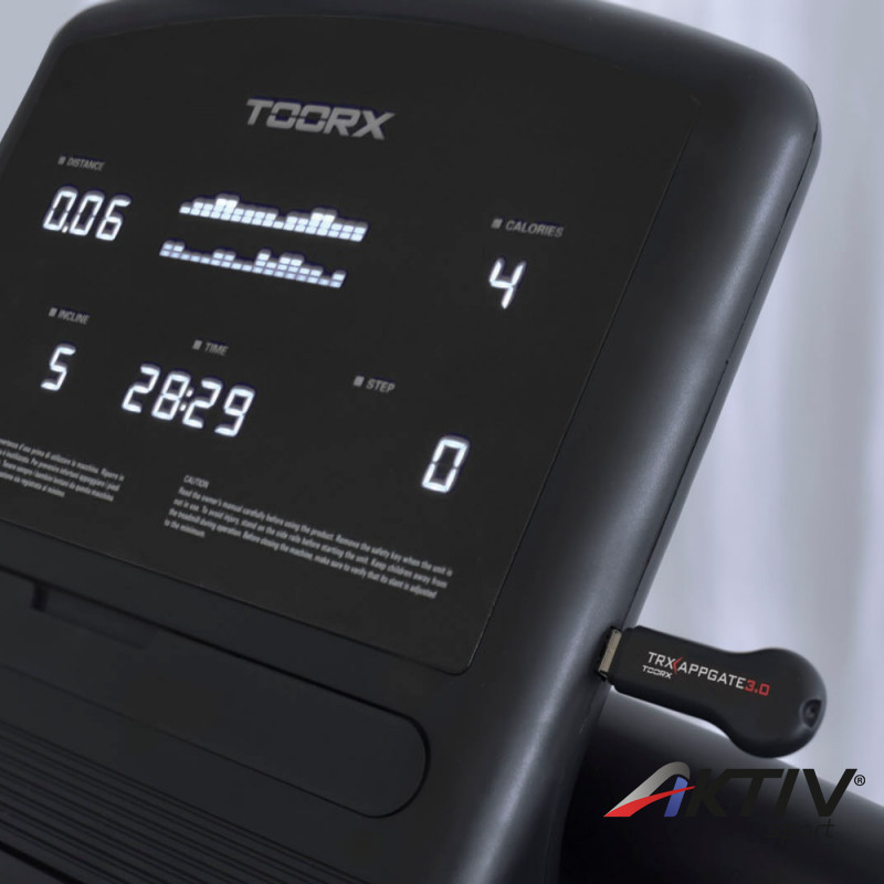 Ma már ésszerű igény, hogy a futópad az interaktív edzésekhez is alkalmazható legyen. Ennek az igénynek is tökéletesen megfelel a Toorx EXPERIENCE PLUS futópad, melyhez a TRX App Gate külön megvásárolható. A TRX App Gate csatlakoztatható a kijelzőn található USB foglalatba.