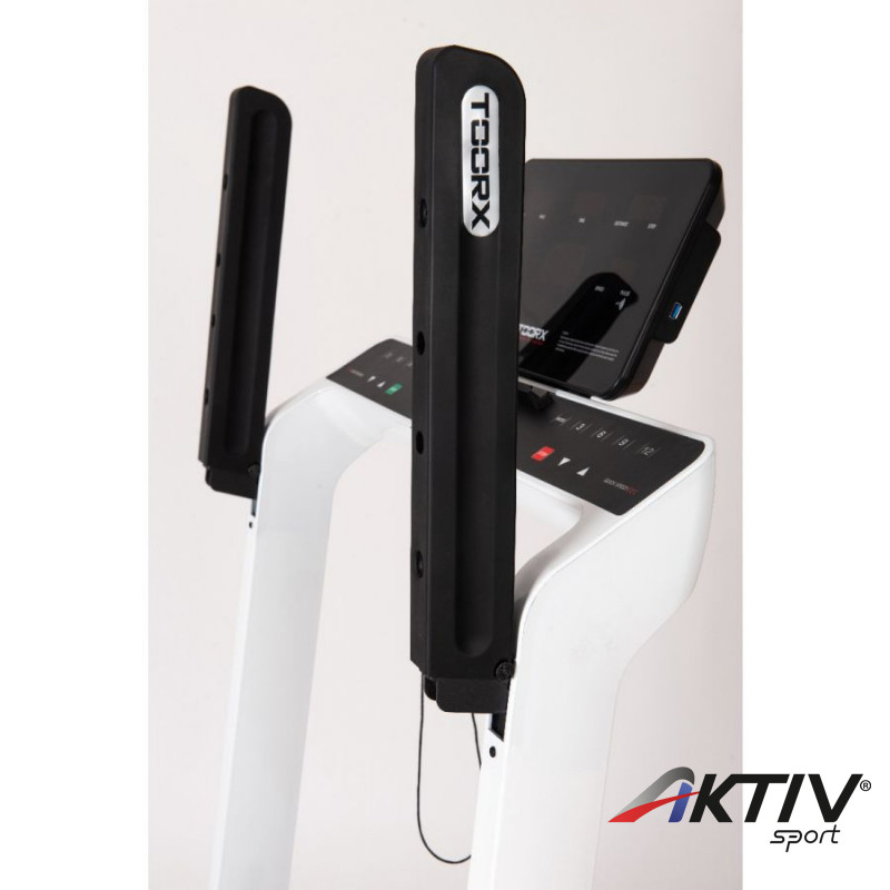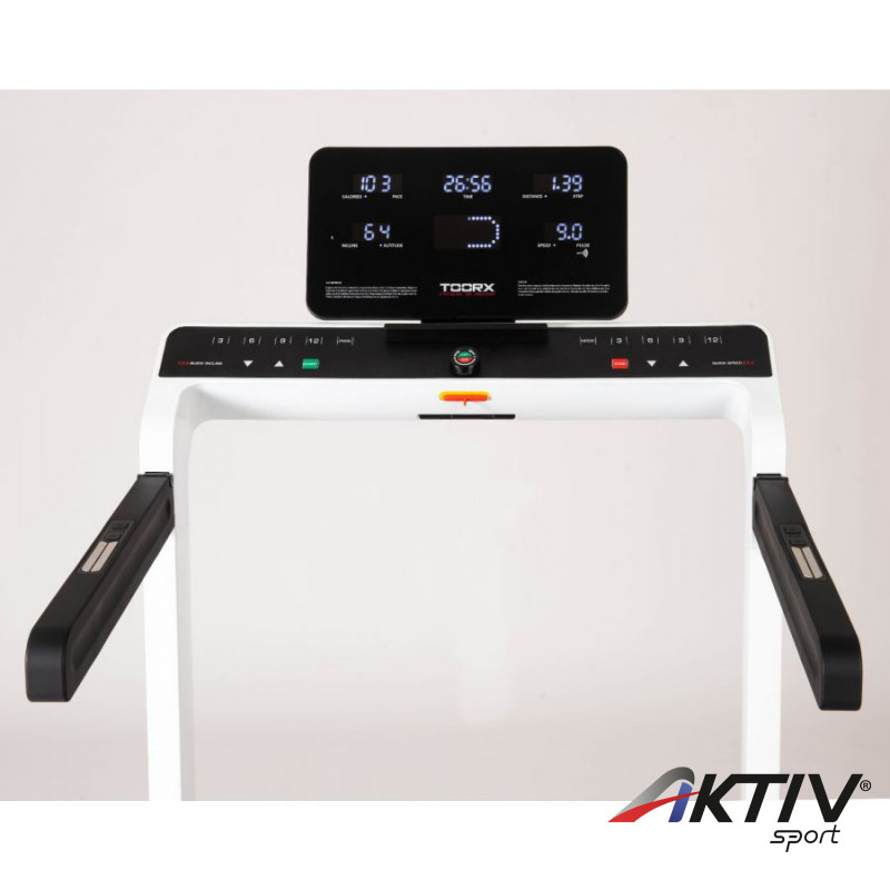 A Toorx MIRAGE C60 futópad az edzés fontos adatait fehér háttérvilágítású 5 ablakos LCD kijelzőn jeleníti meg. Biztonságos edzésről a markolati pulzusmérők gondoskodnak, de külön rendelhető hozzá mellkasövi pulzusmérő is.