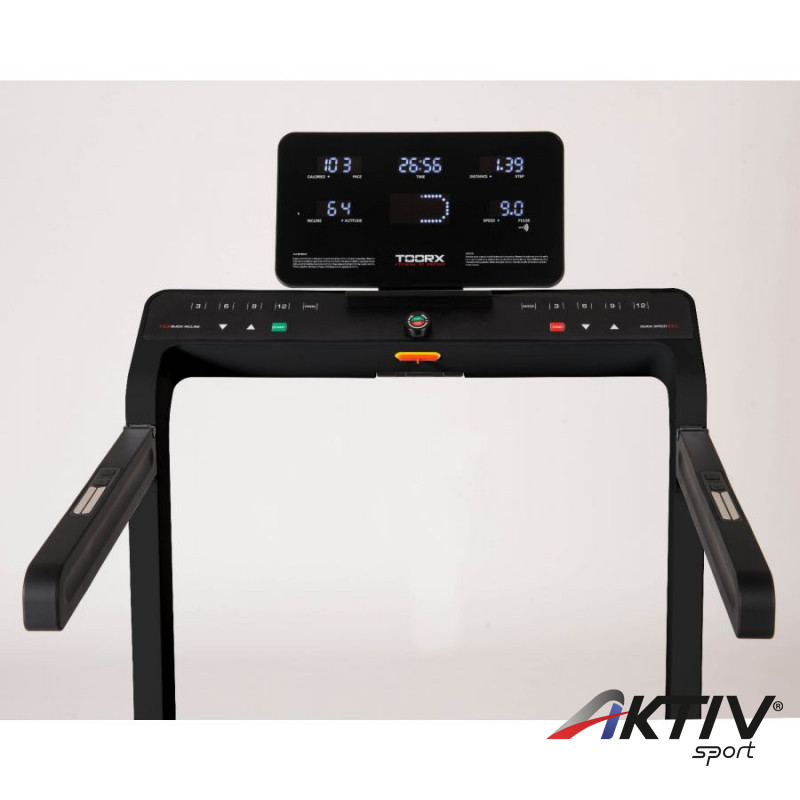 A Toorx MIRAGE C60 futópad az edzés fontos adatait fehér háttérvilágítású 5 ablakos LCD kijelzőn jeleníti meg. Biztonságos edzésről a markolati pulzusmérők gondoskodnak, de külön rendelhető hozzá mellkasövi pulzusmérő is. Beépített Bluetooth hangszóróinak segítségével az edzése alatt kedvenc zenéit hallgathatja.