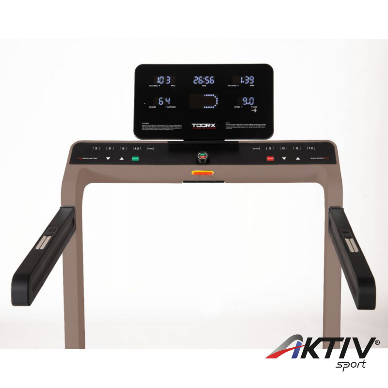 A Toorx MIRAGE C60 futópad az edzés fontos adatait fehér háttérvilágítású 5 ablakos LCD kijelzőn jeleníti meg. Biztonságos edzésről a markolati pulzusmérők gondoskodnak, de külön rendelhető hozzá mellkasövi pulzusmérő is.