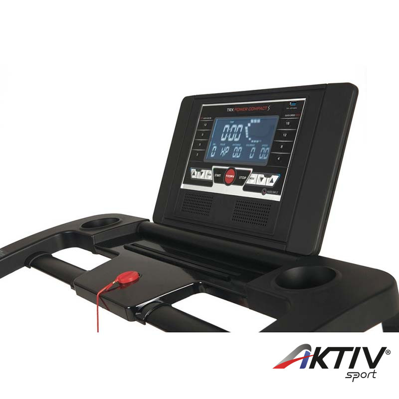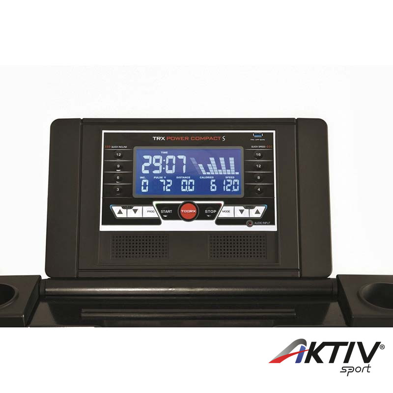 A Toorx TRX POWER COMPACT S futópad az edzés fontos adatait kék háttérvilágítású 164x72 mm-es LCD kijelzőn jeleníti meg. Biztonságos edzésről a pontos pulzusadatokat mérő tartozék mellkasöv, valamint a markolati pulzusmérők gondoskodnak.