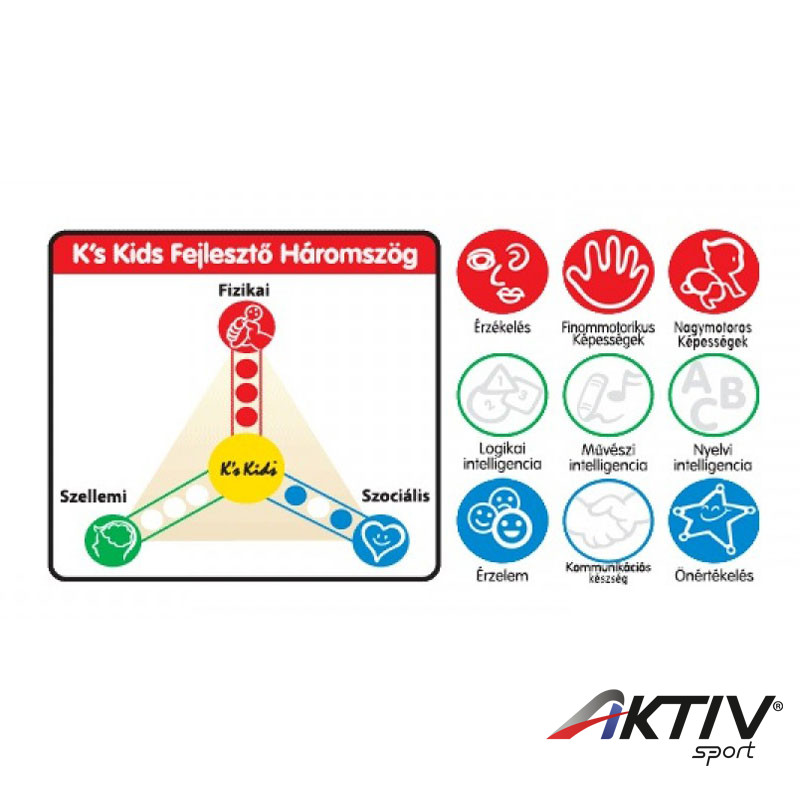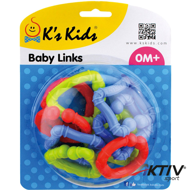 K's Kids Fűzhető alakzatok bébijáték. Kilenc darab színes, különböző textúrájú, műanyagból készült láncszem, melyet a babák kedvükre fűzögethetnek egymásba. A játék remekül fejleszti a babák érzékelését, finommotorikus, nagymotoros képességét, érzelmi készségét, valamint önértékelését. A K's Kids Fűzhető alakzatok bébijáték mérete 6 x 6 cm. 0 éves kortól ajánljuk.