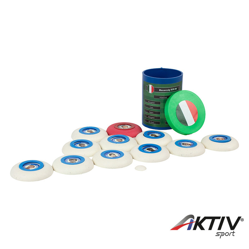Ezzel a nagyszerű gombfoci szettel a meccs újra eljátszható és most még ajándék matricákat is tartalmaz a csomag.