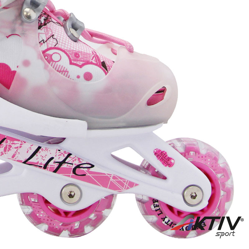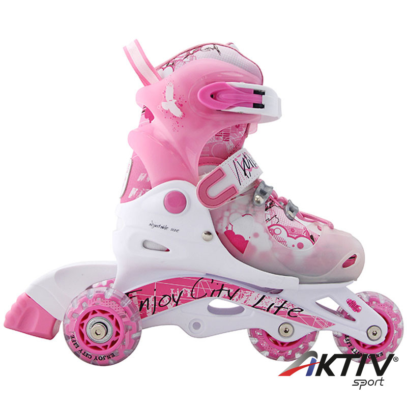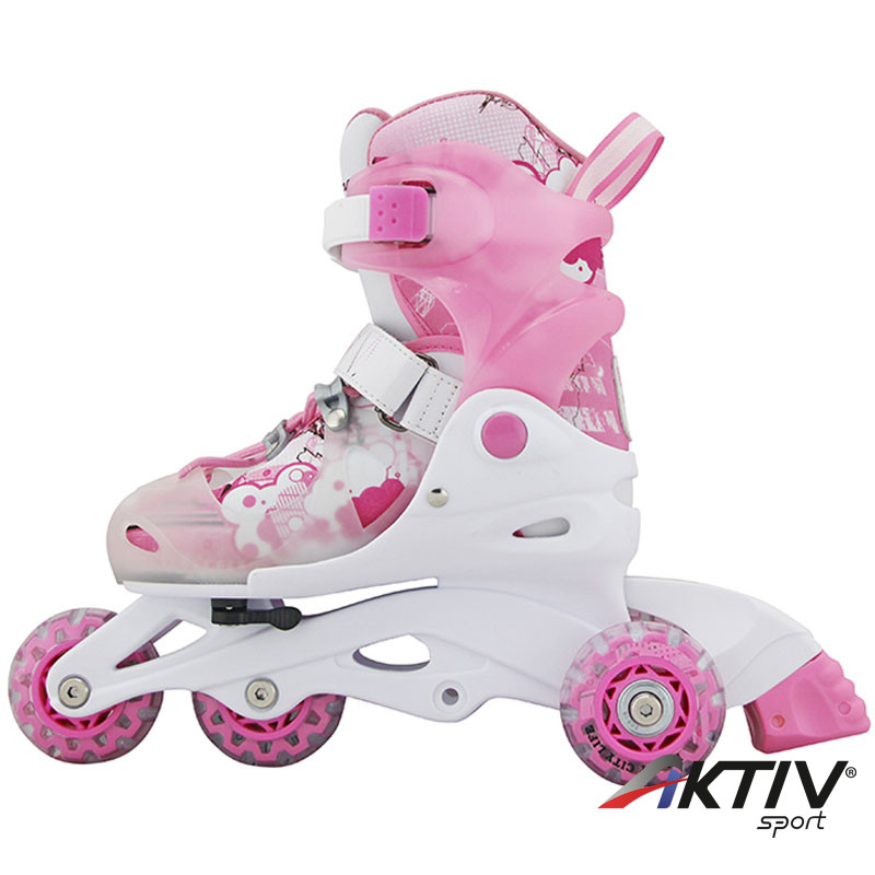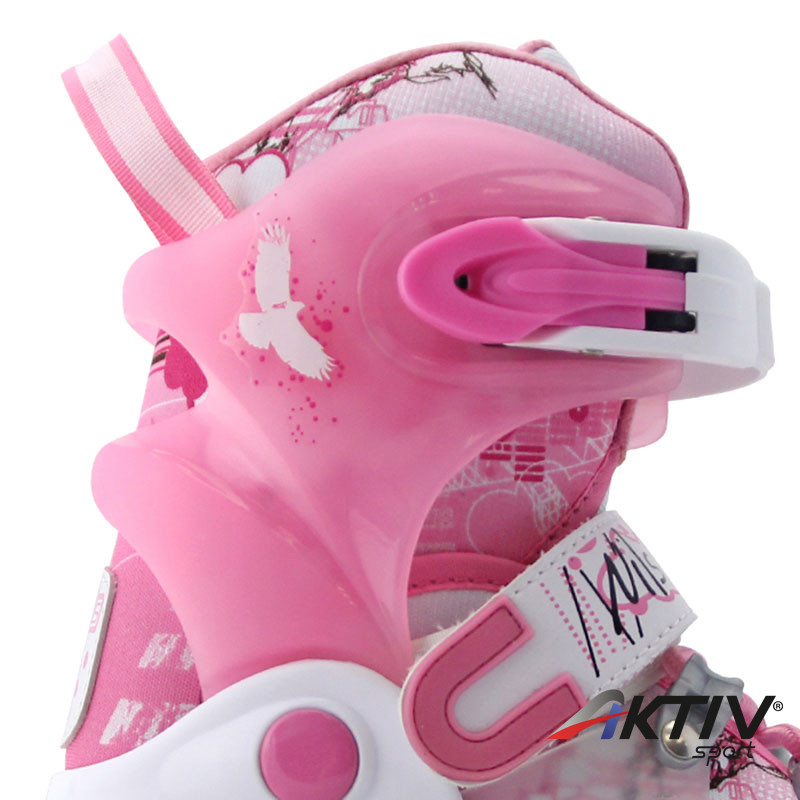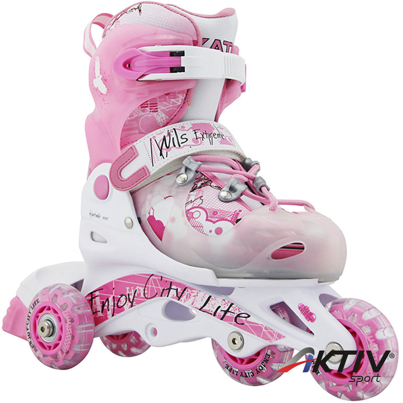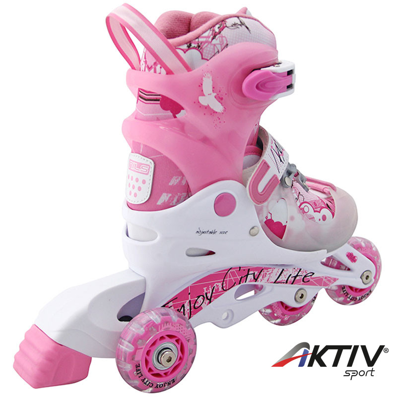 A Nils rózsaszín görkorcsolya a legfiatalabb kezdő görkorcsolyázók számára lett kialakítva, hiszen átalakítható.