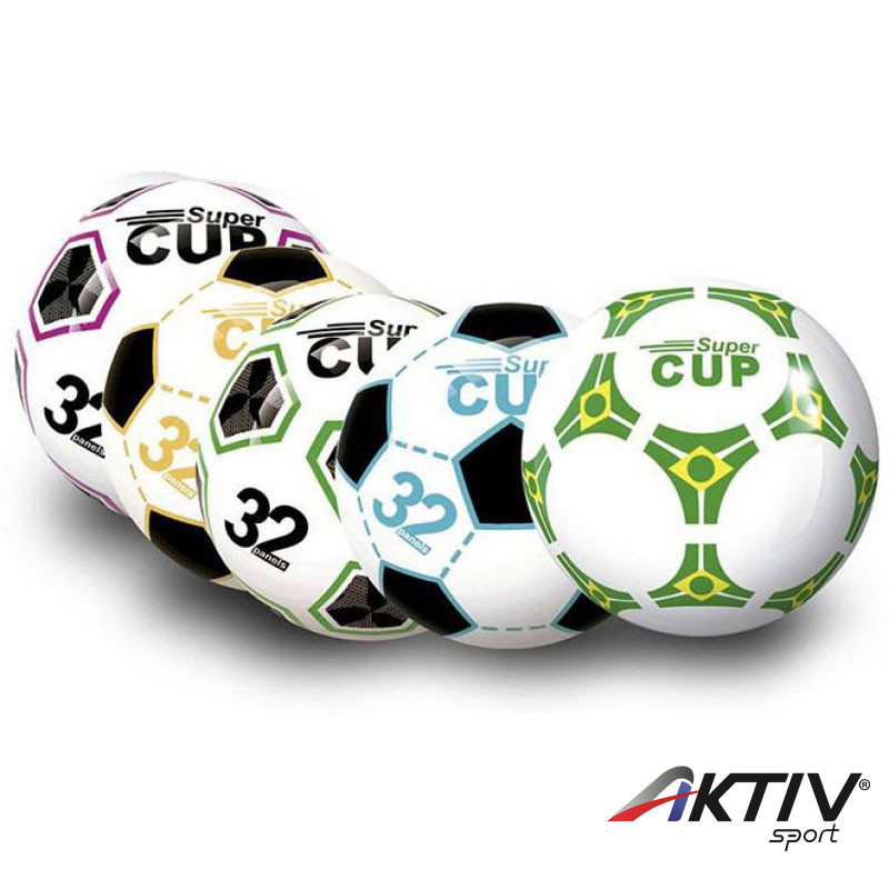 Super Cup felirattal díszített gumilabda. Kültérben és beltérben egyaránt használható.