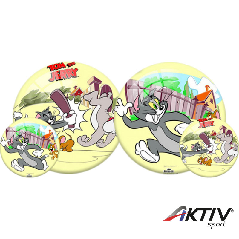 A két mókás jó barát, Tom és Jerry képével díszített gumilabda. Kültérben és beltérben egyaránt használható.