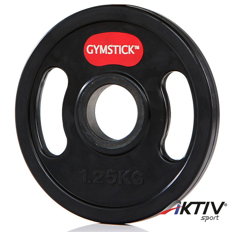 A Gymstick gumiperemes súlytárcsa felülete speciális fekete gumírozott réteggel van bevonva, mely magasan kopásálló. A súlytárcsa ergonómikusan formázott markolattal van ellátva, ami lehetővé teszi a könnyebb fogást a klasszikus súlytárcsákkal szemben. Ideálisak erőnléti edzésekhez.