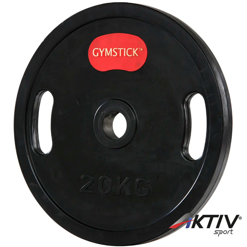 A Gymstick gumiperemes súlytárcsa felülete speciális fekete gumírozott réteggel van bevonva, mely magasan kopásálló. A súlytárcsa ergonómikusan formázott markolattal van ellátva, ami lehetővé teszi a könnyebb fogást a klasszikus súlytárcsákkal szemben. Ideálisak erőnléti edzésekhez.
