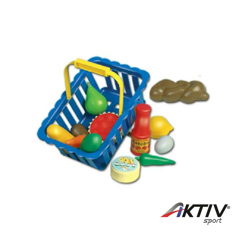Műanyag játék gyümölcsök kosárban, az igazi bevásárlás élményért.