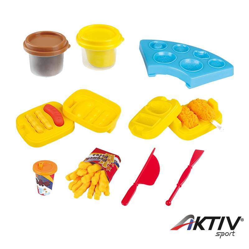 A színes gyurmák és a nyomóformák lehetővé teszik, hogy olyan ételek kerüljenek gyermeked asztalára, melyeket a gyorséttermekben látott.
