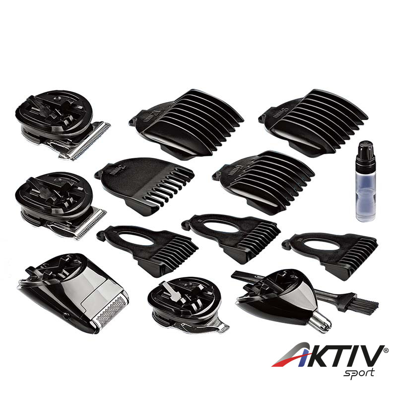 A cserélhető fejek és tartozék műanyag fésűk sokoldalú használatot biztosítanak. 5 db cserélhető fej széles-, normál-, precíziós vágófej, orrszőrnyíró, borotva, valamint 4 műanyag fésű a hajvágóhoz ( 3, 6, 9, 12 mm) és 3 műanyag fésű a szakállnyíráshoz ( 4, 6, 8 mm).