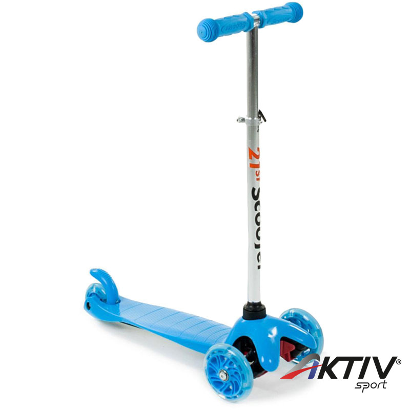 Kék háromkerekű roller, amelynek nem csak vagány dizájnja van, de használatkor még a kerekei is világítanak!