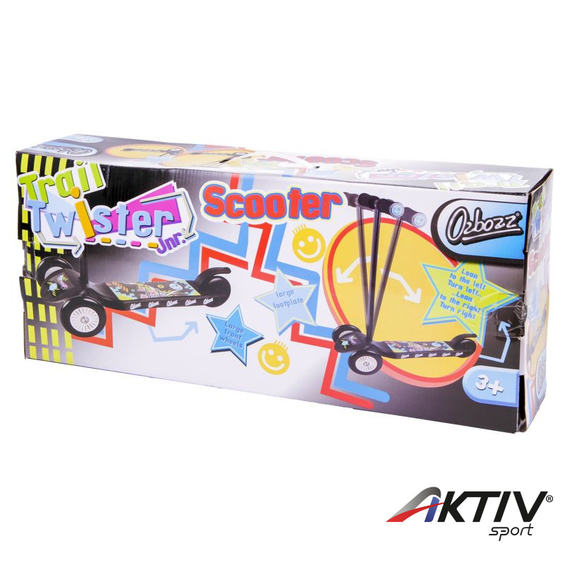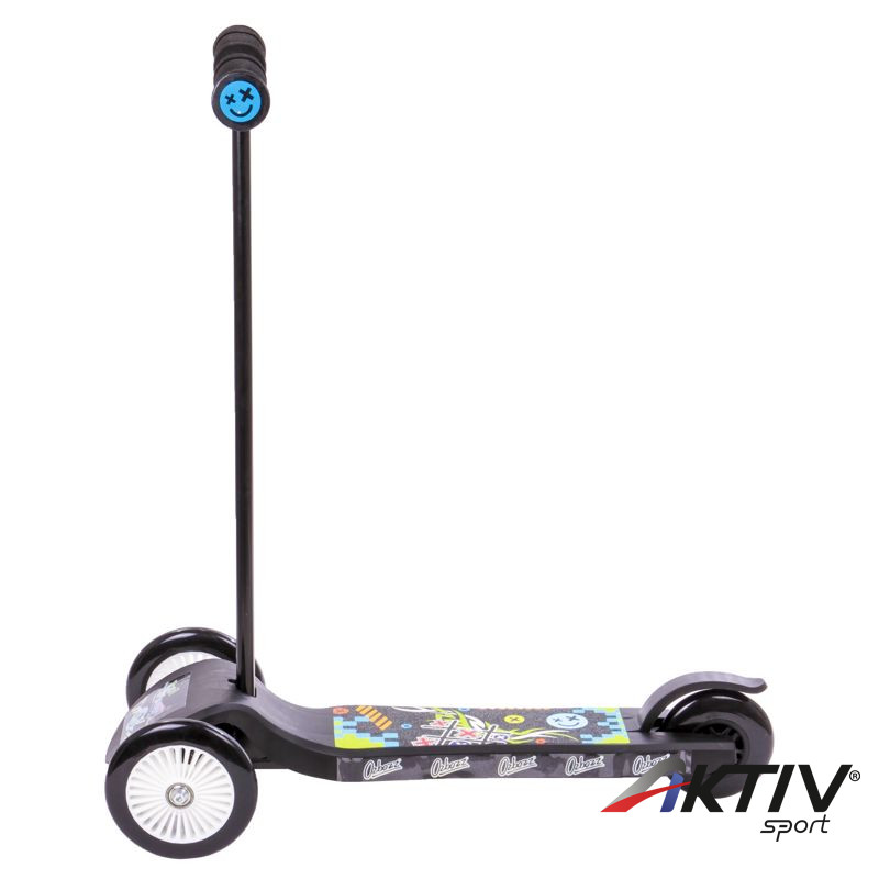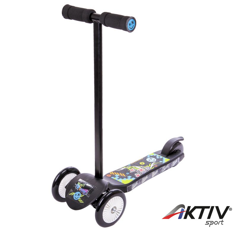 A fekete Junior Twist háromkerekű roller egy kifejezetten fiúknak készült, műanyag roller, széles állólappal. A rollert könnyű irányítani, elöl két nagy keréken gurul, míg a hátsó kicsi kereket fékezni is tudod. A roller biztonságos, és már egész kicsi korban is lehet vele száguldozni a parkban, vagy a játszótéren is.