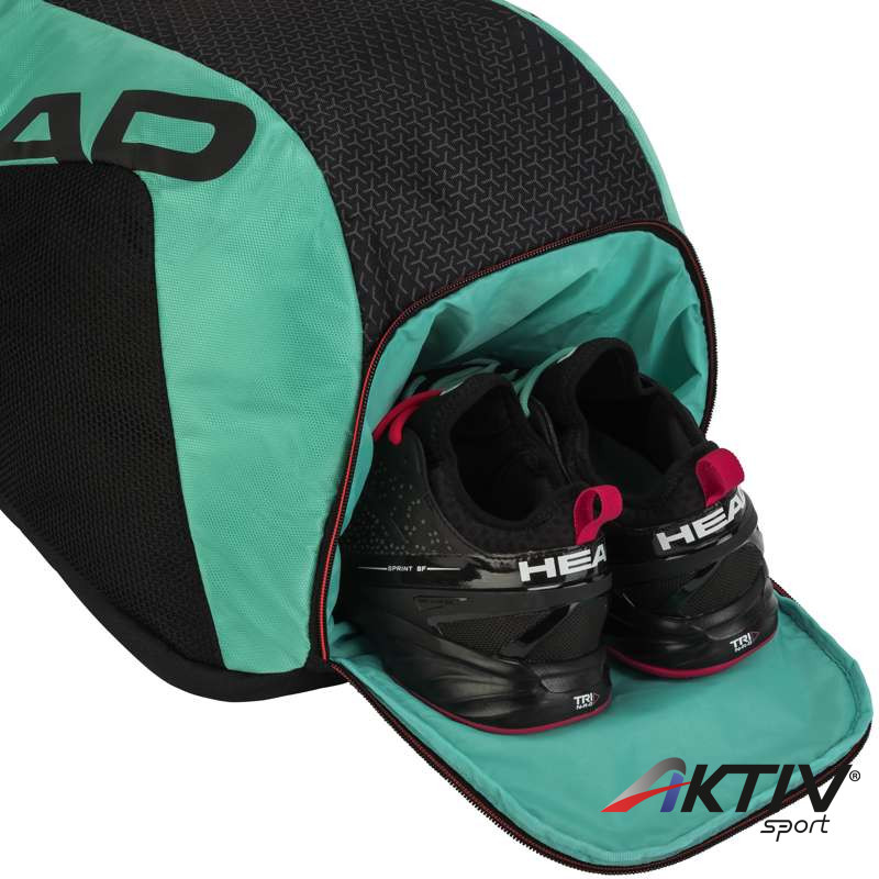 Egyik rekeszében kényelmesen elfér a teniszütő, míg a másik nagy zsebében cipőink. A cipő tartó zseb teljesen el van szelektálva, így nem koszolja össze felszerelésünket.