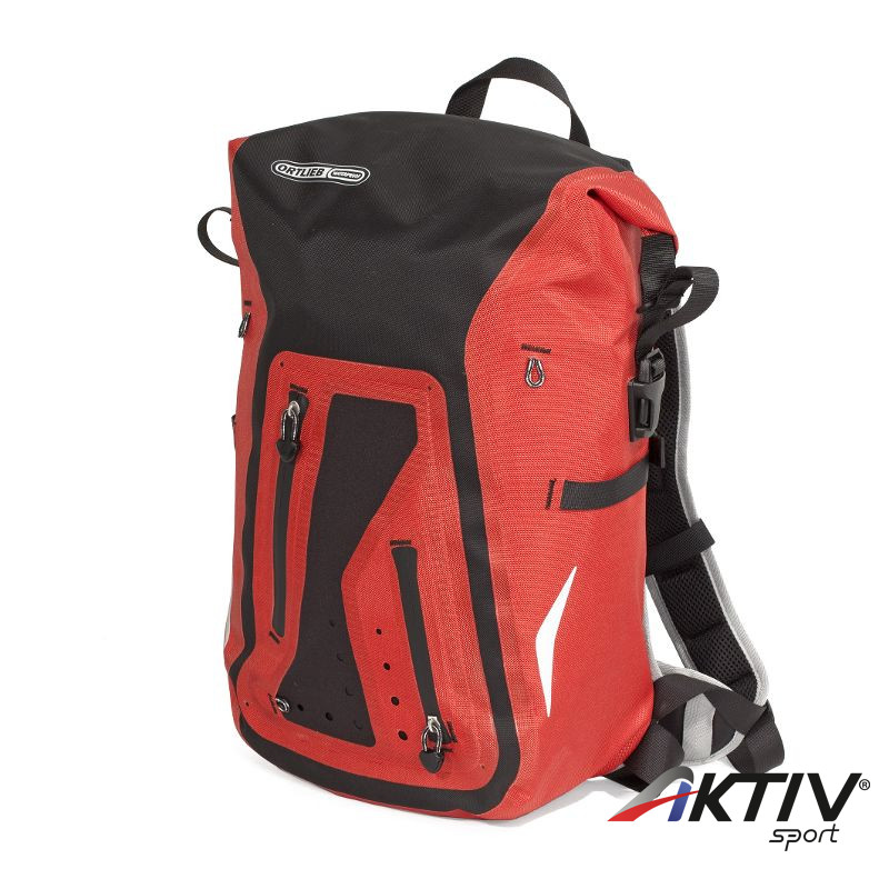 Teljesen újratervezett vízálló hátizsák, tekerõs lezárással, fejlesztett szellõzõ hátsó hordozórendszerrel, derék- és mellhevederrel (a csípõnél béléssel), belsõ rendezõvel, rugalmas neoprén elsõ zsebbel (nem vízálló!), sisaktartóval, hordozófüllel, nyílással ivócsõ számára (csövet nem tartalmaz), fényvisszaverõkkel.
