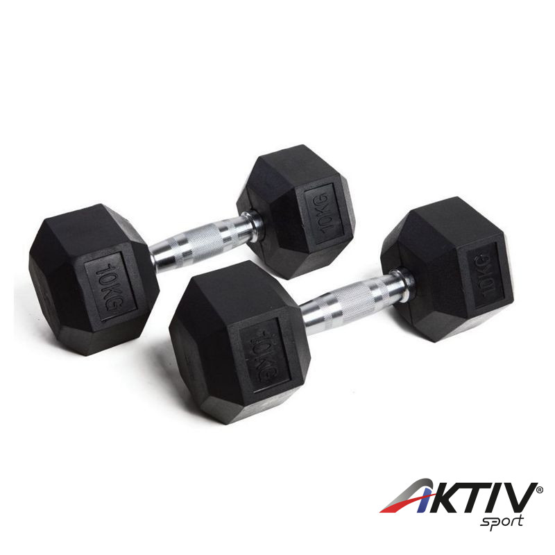 Hatszögletű kézisúlyzók krómozott acél markolattal és gumírozott végekkel. alakjának köszönhetően a súlyzók a talajra helyezéskor egyhelyben maradnak, nem gurulnak el.