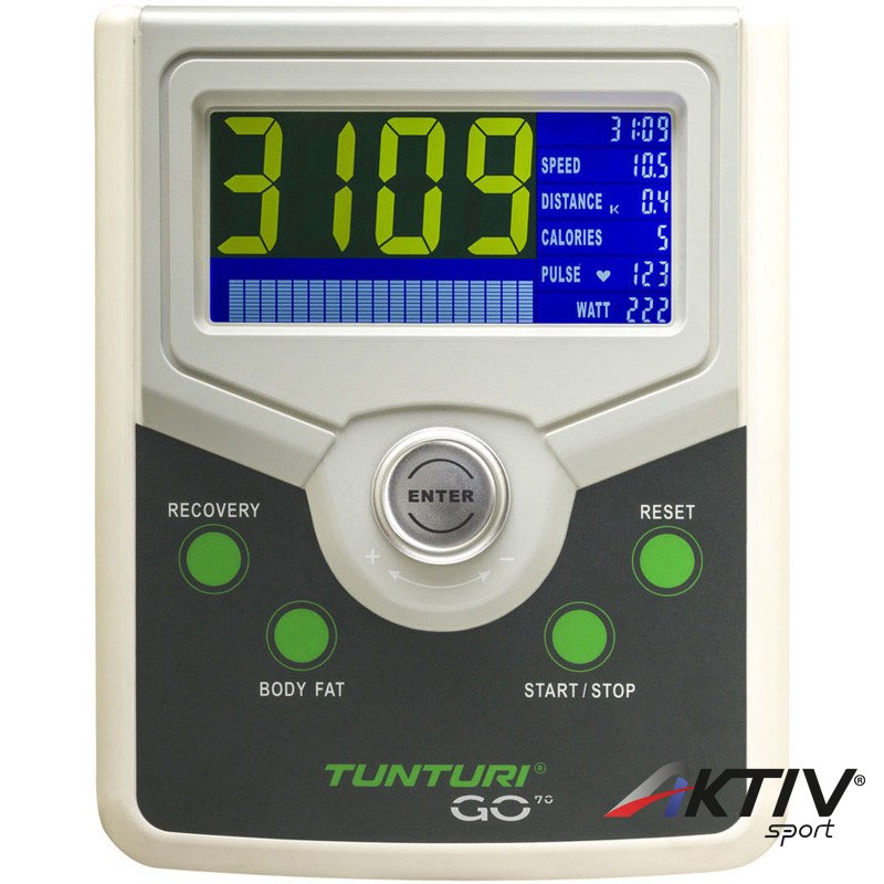 A Tunturi GO Bike R70 háttámlás ergométer környezetbarát és energiatakarékos. A szobakerékpár mágnesfékes rendszere elektromosan 32 fokozatban szabályozható. Nem igényel hálózati csatlakozást, szabadon mozgatható és tetszés szerint bárhol használható a lakáson belül. Színes, LCD kijelzővel rendelkezik, amely mutatja az eltelt időt, a sebességet, a fordulatszámot, a megtett távolságot, az elégetett kalóriák számát, a Watt értéket és a pulzusszámot. A biztonságos edzés érdekében markolati pulzusmérővel, és mellkasövi pulzusmérési lehetőséggel is rendelkezik. Stabil szerkezetű, maximális terhelhetősége 135 kg.