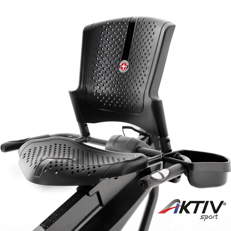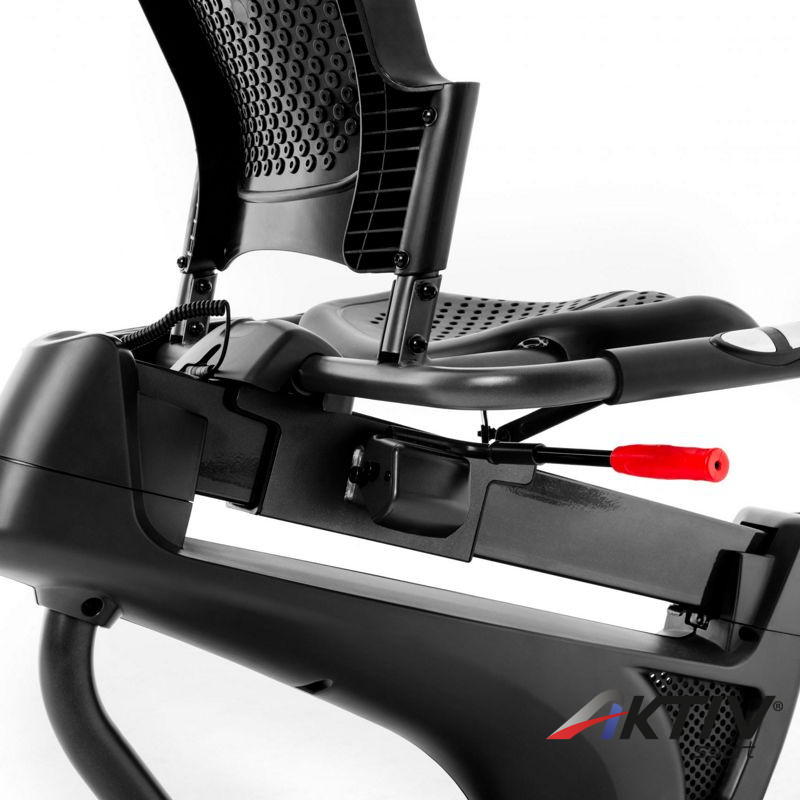 Mindez az új megjelenésű 14 cm átmérőjű háttérvilágításos LCD kijelzővel párosul, melyen a nagy ablakos felső, program kijelző mellett több funkcióértéket is mutat egy időben. A speciális, deréktámasszal szerelt háttámla kiváló érzetet biztosít mivel ergonómiailag formázott és a kialakított szellőzési lehetőségnek köszönhetően kellemes klímát kölcsönöz edzés közben. Az ülés komfortosan állítható sínen mozog, aminek segítségével pontosan be lehet állítani megfelelő távolságot.